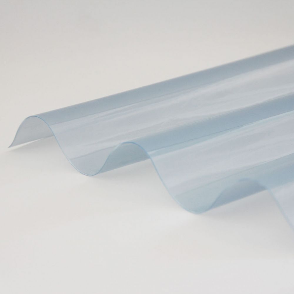 La feuille ondulée en PVC Corru est une feuille de PVC tout usage pour la toiture et le revêtement. Facile à installer, léger et économique Corru PVC est une bâche de toit ondulée appropriée pour les auvents, les belvédères et les ports de voiture. Les installations sont faciles, elles peuvent être coupées, percées et installées avec des outils de fais le toi-même standards. Des options de couleur claires et bronze sont disponibles.