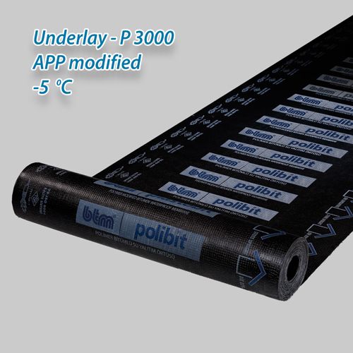 BTM Polibit is a fiberglass or polyester felt reinforced waterproofing membrane made of bitumen modified with APP (atactic polypropylene), the lower surface is coated with PE (polyethylene) film and the upper surface is coated with PE (polyethylene) film or colored granules and applied with an oxyacetylene burner.